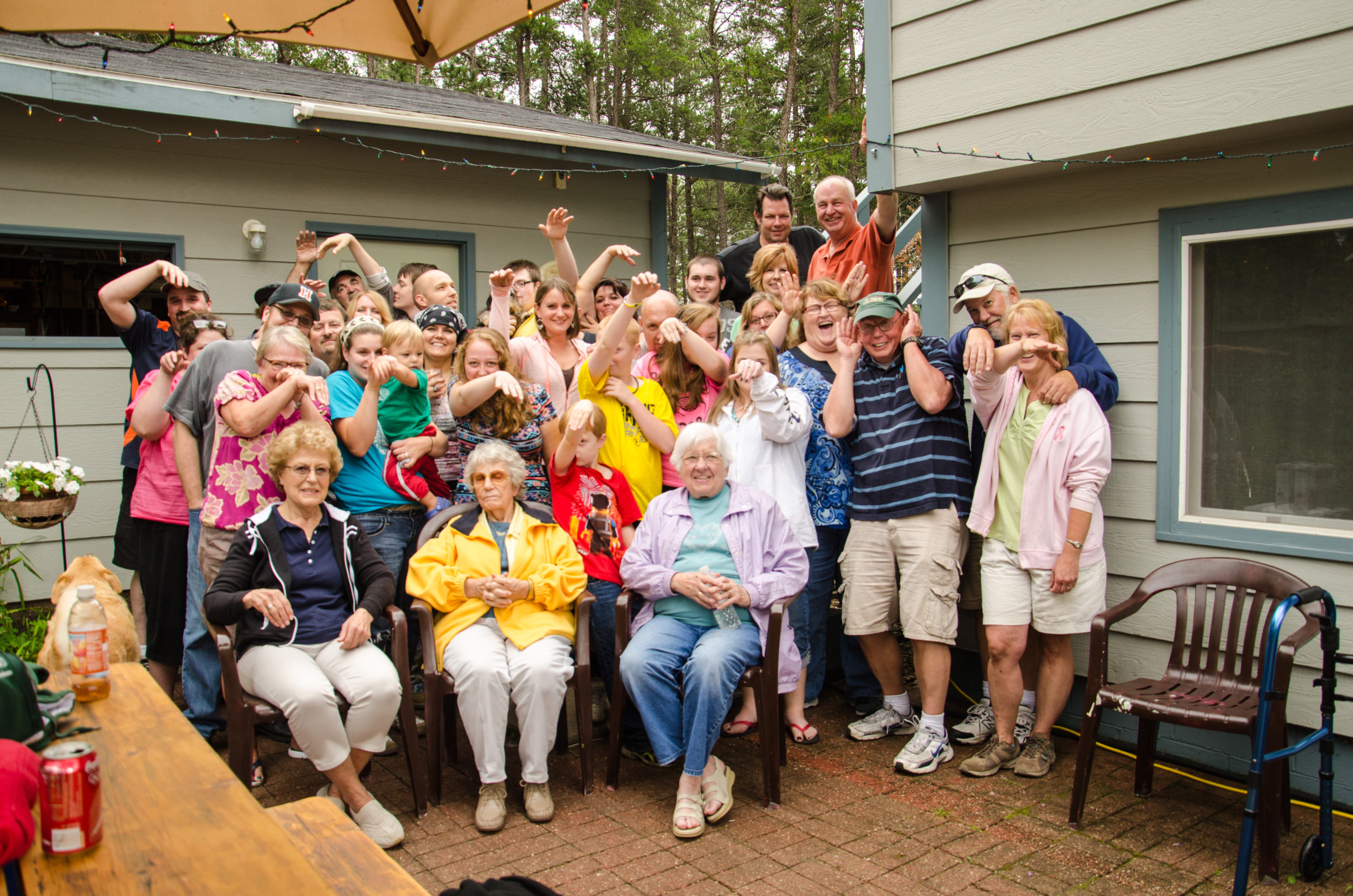 This year’s family gathering included a celebration of Ellen Bannister’s 90 birthday, and a large group of family and friends were able to join in the festivities. It was especially nice to have Lyn Erickson, Ellen’s younger sister, participate. Sisters, Ellen (Stenlund) Bannister and Lyn (Stenlund) EricksonGary and BarbaraLarry and LisaBarb’s son Andy Vestich, wife Joanna, and son HunterChris, Megan, Lindsay, and GregRyan, Josh, Amber, Tyler, and Abi.John and Roxanne BannisterGrace (Bannister) Turan’s daughter Mary and husband, George Anderson.Posing as elephants.