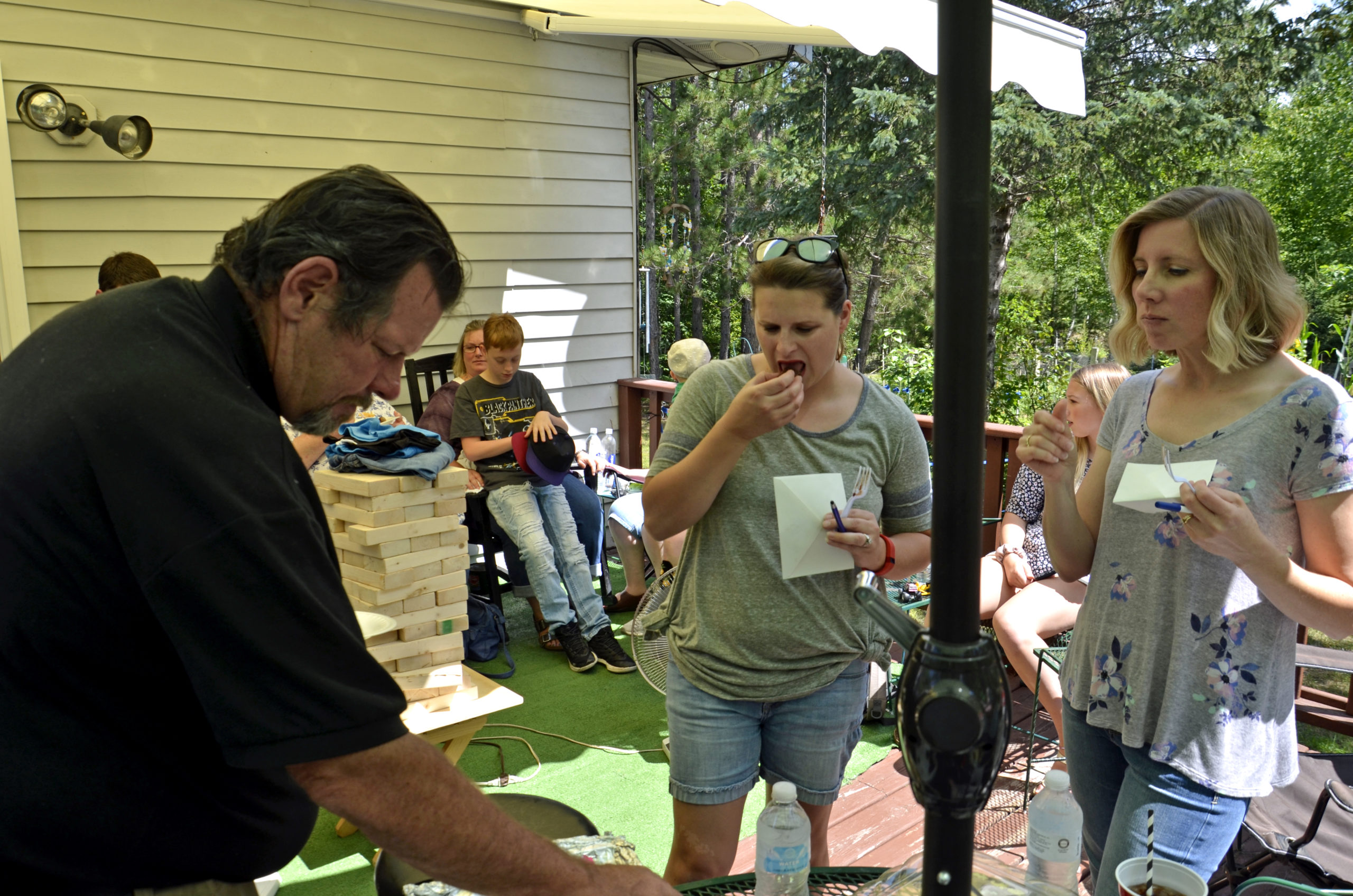 This year’s gathering was graciously hosted by Larry and Lisa at their home in Michigan. There were plenty of games (with prizes), activities, food, and quality interactions.Larry Vestich and Lisa Arndt.Sights around the groundsGary Gagnon and wife Barbara Bannister Gagnon.Lindsay, Greg, and Chris Kleinheinz.Dave Honzik, Nicole Vestich Biesterveld, and Chris Vestich Kleinheinz judge the dessert cookoff. Nathan Vestich.Graham, Ben, Nicole, and Asher Biesterveld.Dave Honzik and Ozzie.Larry Vestich loves to vex his twin sister, Laura Vestich Kopsi.Aubrey Talus and Andy Kopsi with son Caden.It was a great day for badminton, until the shuttlecock got stuck on the roof!Can Greg Kleinheinz pull another wooden bar to safety? Daughter Lindsay isn’t concerned.The Cornhole Wizards: Christina Vestich Kleinheinz, Ryan Buschmann, and Amber Bannister Buschmann.Nancy Bannister won this beautiful but fishy blanket in a drawing.Abi Buschmann proudly shows her afternoon door prize. L to R: Don, Roxanne, Owen’s arm, John, Bethany, Milo, Abi, Tyler, Amber, Josh, Ryan, Nancy, Don Nancy and Don Bannister, surrounded by children Bethany, John, and Amber.Josh, Amber, Tyler, Ryan, and Abi Buschmann.The Bannister sisters, Amber Bannister Buschmann and Bethany Bannister, wear a matching pair of sunglasses.Owen, Roxanne, Milo, and John Bannister.Don Swanson and Bethany BannisterSiblings John Bannister, Bethany Bannister, and Amber Bannister Buschmann.Chris Vestich Kleinheinz and Barb Bannister Gagnon.And a good time was had by all.
