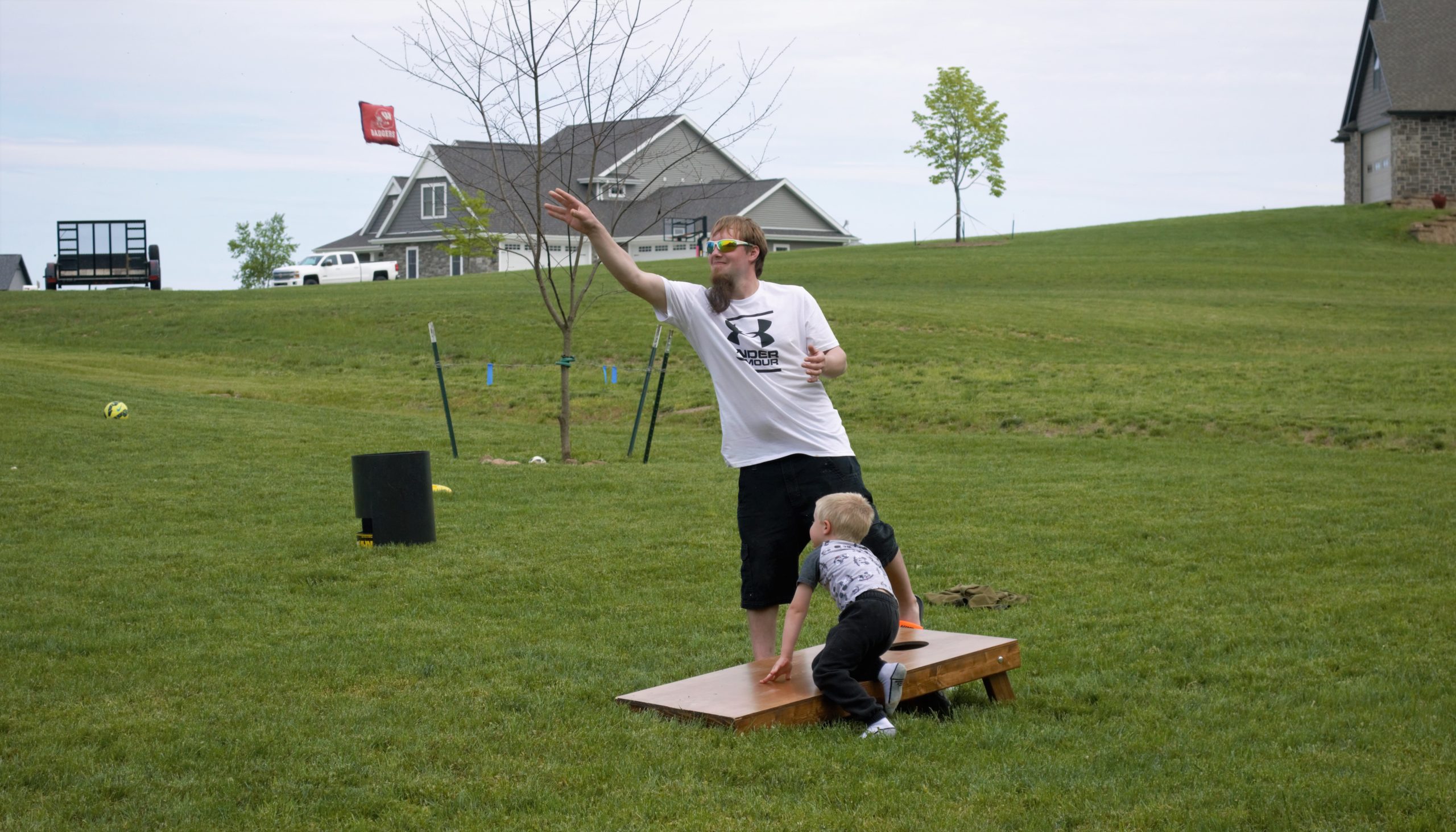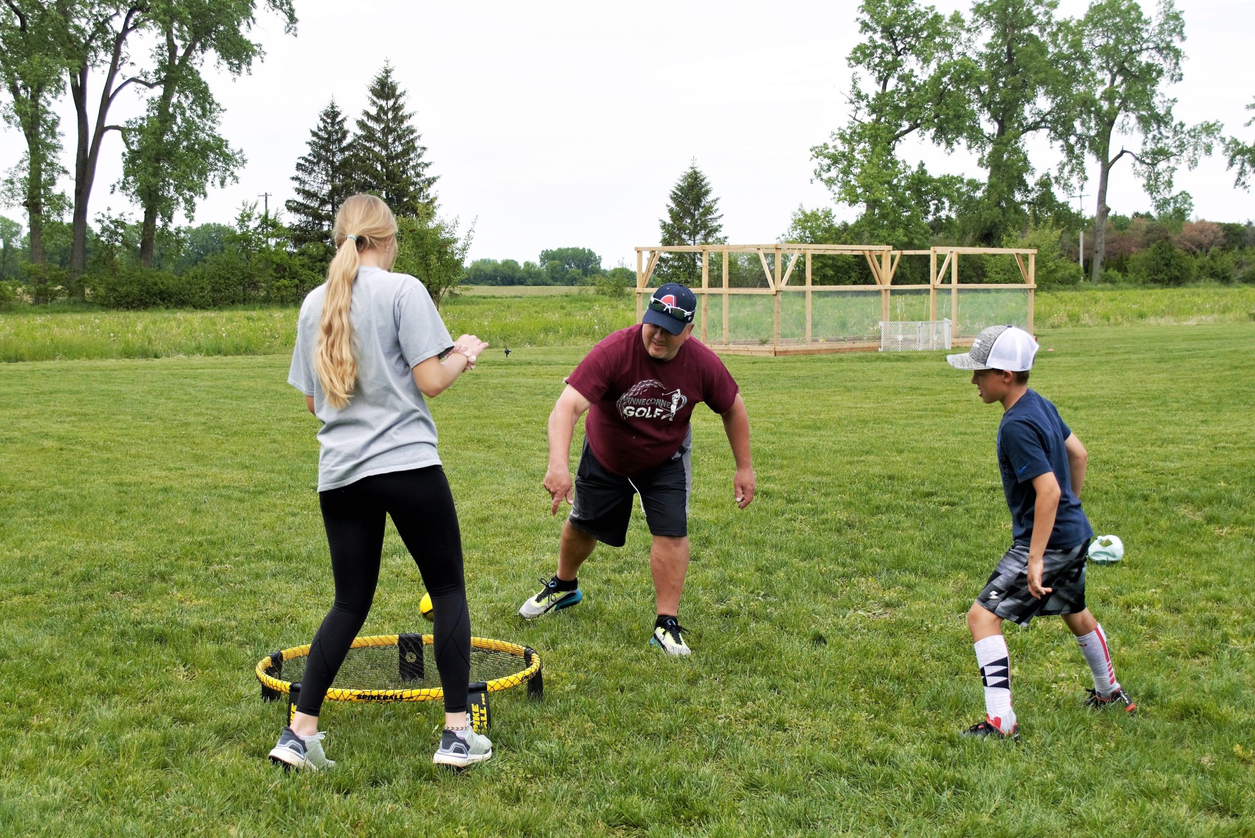 From left, standing in order of appearance in back: Alex Kopsi, Laura Kopsi, Gary Gagnon, Barbara Bannister Gagnon, Lisa Arndt, Kelle Honzik, Larry Vestich, Zachary Honzik, Nicole Biesterveld, Dave Honzik, and Ben Biesterveld. In front from left, Kadina Sarila, Lucy Kopsi, Porter Biesterveld, Graham Biesterveld. To the side were, Greg Kleinheinz, {stooping) and Donald Bannister, (standing). In front, Megan Kleinheinz, Paisley (the Biesterveld dog), Christina Kleinheinz and Lindsay Kleinheinz.The Biesterveld family, hosts of the 2021 family party: Graham, Ben, Porter, Nicole and Asher.Laura Kopsi, Lucy Kopsi, Alex Kopsi, Kayla Sarila and Kadina Sarila.The Gagnons and the Honziks: Gary Gagnon, Kelle Honzik, Barbara Bannister Gagnon, Dave Honzik and Zachary Honzik.A very short Barbara Bannister Gagnon and a very tall Zachary Honzik.Kids had fun playing in pink and blue smoke bombs. There’s Emma, Asher, Porter and Kadina.Alex makes a perfect bean bag toss while second cousin Forrest tries to get in on the action.Did he score? Greg (middle) makes a shot at the yellow ring while Megan (left) and Graham attempt a block.Nicole and Christina take a quiet after-lunch break, inviting Lindsay to join the conversation.